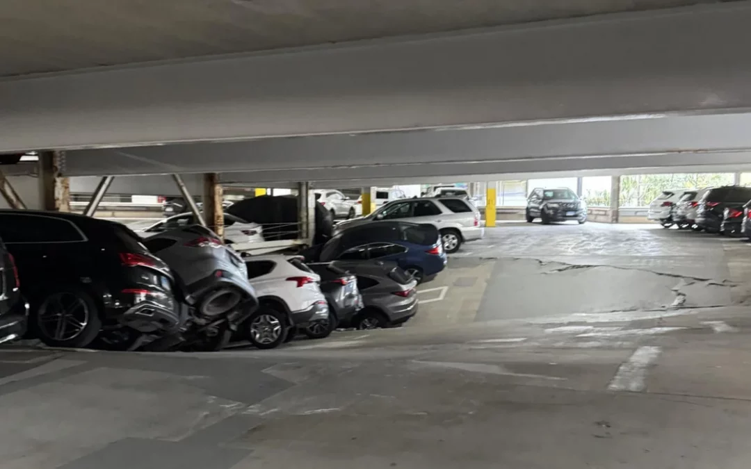 Fortunately, no serious injuries were reported, but several vehicles were damaged and more than 550 cars were trapped as officials closed the facility “until further notice” to ensure safety and conduct a full investigation.